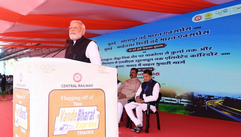 प्रधानमंत्री नरेंद्र मोदी यांनी आज छत्रपती शिवाजी महाराज टर्मिनस रेल्वे स्थानकावर मुंबई ते सोलापूर आणि मुंबई ते साईनगर शिर्डी शहरांदरम्यान धावणाऱ्या वंदे भारत एक्स्प्रेस या वेगवान रेल्वे गाडीला हिरवा झेंडा दाखवून मार्गस्थ केले.