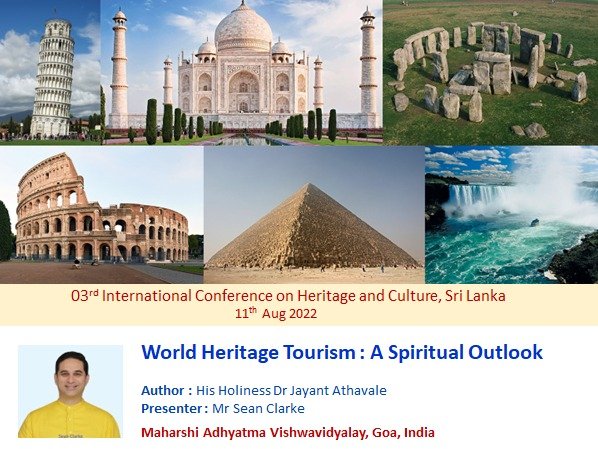 जागतिक स्तरावर आपण अयोग्य वारसास्थळांचा प्रसार करत आहोत. आपण सकारात्मक प्रभावळ असलेली वारसास्थळे निवडून त्यांचा प्रसार करायला हवा, जेणेकरून पर्यटक जेव्हा या स्थळांना भेटी देतील, तेव्हा त्यांना नकारात्मकतेच्या ऐवजी स्थळांच्या सकारात्मकतेचा लाभ मिळू शकेल, असे प्रतिपादन महर्षि अध्यात्म विश्वविद्यालयाचे श्री. शॉन क्लार्क यांनी केले. ते ‘ग्लोबल अकॅडमिक रिसर्च इन्स्टिट्यूट, श्रीलंका’ यांनी आयोजित केलेल्या ‘द थर्ड इंटरनॅशनल कॉन्फरन्स ऑन हेरिटेज अँड कल्चर’ या परिषदेत ‘ऑनलाईन’ सहभागी होऊन बोलत होते. श्री. क्लार्क यांनी ‘जागतिक वारसास्थळांशी संबंधित पर्यटन : आध्यात्मिक दृष्टीकोन’ हा शोधनिबंध सादर केला. महर्षि अध्यात्म विश्वविद्यालयाचे संस्थापक परात्पर गुरु डॉ. जयंत बाळाजी आठवले हे या शोधनिबंधाचे लेखक, तर श्री. शॉन क्लार्क हे सहलेखक आहेत. महर्षि अध्यात्म विश्वविद्यालयाने वैज्ञानिक परिषदांमध्ये सादर केलेले हे 95 वे सादरीकरण होते. महर्षि अध्यात्म विश्वविद्यालयाच्या वतीने आतापर्यंत 17 राष्ट्रीय आणि 78 आंतरराष्ट्रीय वैज्ञानिक परिषदांमध्ये शोधनिबंध सादर केले आहेत. यांपैकी 11 आंतरराष्ट्रीय परिषदांमध्ये ‘सर्वोत्कृष्ट शोधनिबंध पुरस्कार’ मिळाले आहेत.