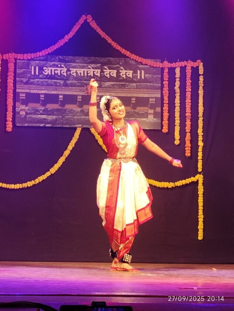 पुणे: भारतीय शास्त्रीय नृत्याच्या परंपरेतील एक अत्यंत महत्त्वाचा आणि ऐतिहासिक क्षण, नृत्यांगणा सौ. वैष्णवी धर्माधिकारी (देशपांडे) यांचा ‘अरंगेत्रम्’ सोहळा दिनांक 27 सप्टेंबर रोजी पुण्याच्या सदाशिव पेठेतील टिळक स्मारक मंदिरात यशस्वीरित्या पार पडला. कवी संत सर्वज्ञ दासोपंत स्वामी यांच्या मराठी भक्ती पदांवर आधारित हा कार्यक्रम कला आणि भक्ती यांचा अनुपम संगम साधणारा ठरला.