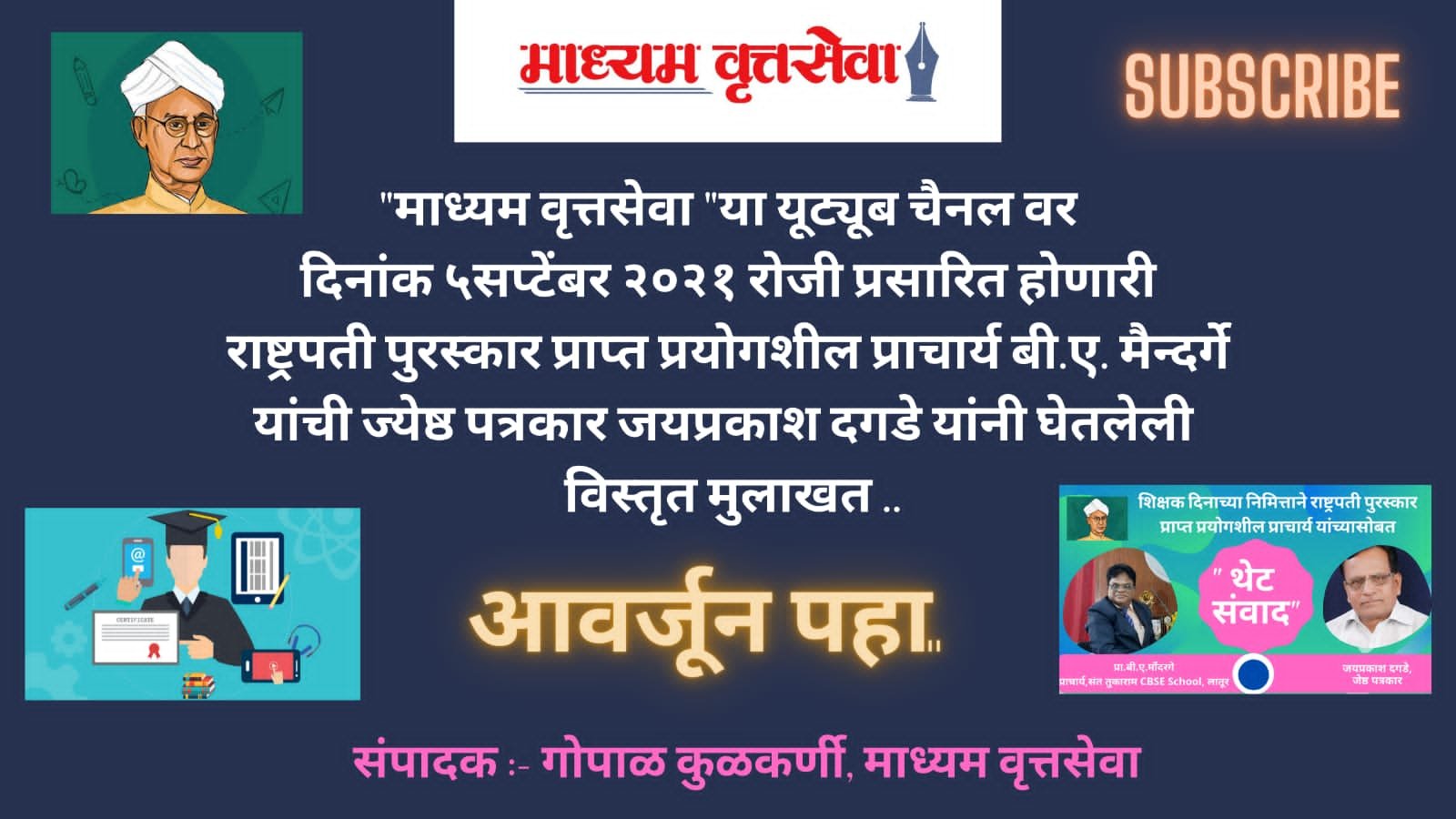 जनसंपर्कराष्ट्रीयशैक्षणिकसामाजिकसाहित्यशिक्षक दिनानिमित्त विशेष मुलाखतBy Gopal Kulkarni - September 4, 20210344ShareFacebookTwitterPinterestWhatsAppLinkedinEmailPrintTelegram शिक्षक दिनानिमित्त विशेष अनकट मुलाखतप्रयोगशील शिक्षक मैन्दर्गी यांची मुलाखतमाध्यम वृत्तसेवा या न्यूजयु ट्युब चॅनल वर अवश्य पहा