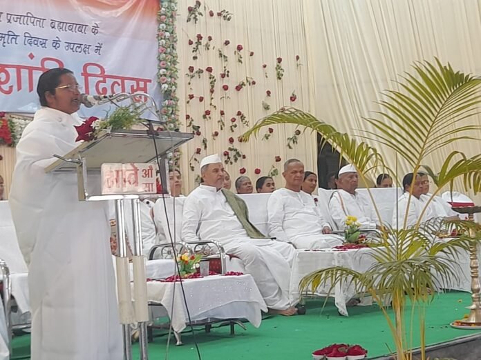 औसा येथे शिवबाबा यांच्या 54 व्या स्मृती दिनानिमित्त आयोजित विश्वशांती दिनाच्या कार्यक्रमात त्या बोलत होत्या शनिवार दिनांक 21 जानेवारी रोजी श्री मुक्तेश्वर मंगल कार्यालय औसा येथे आयोजित कार्यक्रमात व्यासपीठावर गुलबर्गा केंद्राचे संचालक व समाजसेवा विभागाचे माउंट आबू येथील मार्गदर्शक ब्रह्माकुमार प्रेमभाई, नाथ संस्थानचे पाचवे पिठाधिपती सद्गुरु गुरुबाबा महाराज औसेकर, अँड मुक्तेश्वर वागदरे यांच्यासह लातूर,नांदेड, बीड, उदगीर, निलंगा, अहमदपूर, सोलापूर येथील राजयोग शिक्षण केंद्राच्या संचालिका व ज्येष्ठ ब्रह्माकुमारी भगिनी यांची उपस्थिती होती.