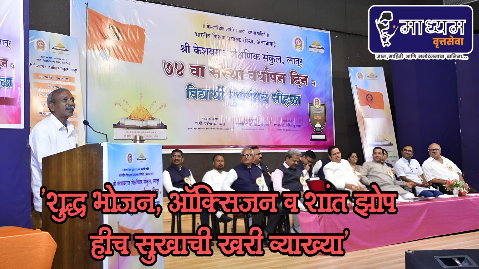 भारतीय शिक्षण प्रसारक संस्था अंबाजोगाईच्या ७४ व्या वर्धापन दिनानिमित्त दि. २८ जून २०२५ रोजी लातूर येथील श्री केशवराज शैक्षणिक संकुलाच्या वतीने दयानंद सभागृहामध्ये घेण्यात आलेल्या गुणवंत विद्यार्थी गौरव सोहळ्यामध्ये दुपारच्या सत्रात कला, क्रीडा क्षेत्रातील राष्ट्रीय स्तरावरचे खेळाडू , शालांत प्रमाणपत्र परीक्षेतील गुणवंत, १२ वी NEET, JEE, सीबीएसई परीक्षेतील गुणवंत विद्यार्थ्यांचा सत्कार समारंभ संपन्न झाला. याप्रसंगी मार्गदर्शन करताना पद्मश्री चैत्राम पवार बोलत होते. कार्यक्रमाच्या अध्यक्षस्थानी भारतीय शिक्षण प्रसारक संस्था, अंबाजोगाई केंद्रीय कार्यकारिणी, सदस्य प्रवीण सरदेशमुख तर विशेष अतिथी औसा विधानसभा मतदारसंघाचे आमदार अभिमन्यू पवार तसेच भारतीय शिक्षण प्रसारक संस्था, अंबाजोगाई केंद्रीय कार्यकारिणी सदस्य जितेश चापसी, संजय गुरव, विष्णू सोनवणे, विद्यासभा संयोजक महेश कस्तुरे, केशवराज शैक्षणिक संकुल स्थानिक समन्वय समिती, अध्यक्ष धनंजय तुंगीकर, कार्यवाह शैलेश कुलकर्णी, शालेय समिती अध्यक्ष गंगाधर खेडकर, केशव शिशुवाटिका शालेय समिती अध्यक्षा श्रीमती वर्षाताई डोईफोडे, श्री केशवराज माध्यमिक विद्यालयाचे मुख्याध्यापक बालासाहेब केंद्रे, रेनिसन्स सीबीएसई स्कूलचे प्राचार्य महेश बांगर, केशव शिशु वाटिका प्रधानाचार्या . श्रीमती अवंती कुलकर्णी यांची मंचावर उपस्थिती होती.