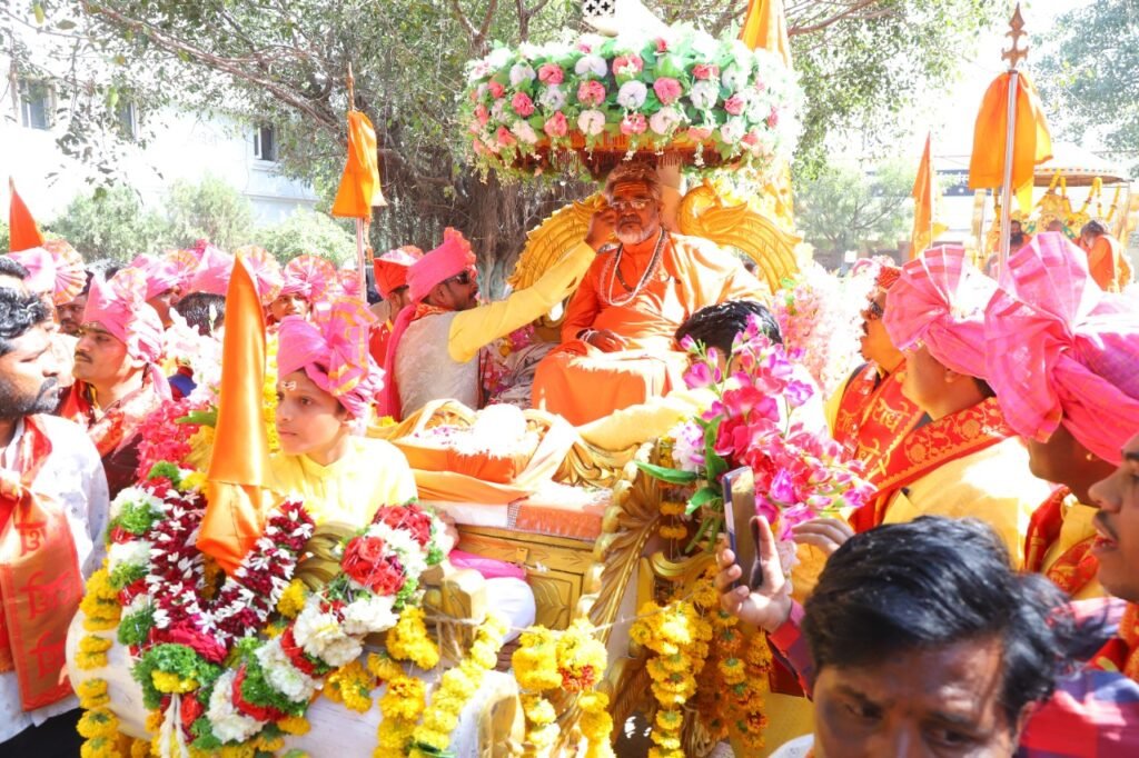 या शोभायात्रेत परमपूजनीय विद्यानंदजी महाराज बाबा आणि विविध प्रांतातून आलेले साधू संत , महंत सहभागी झाले होते. श्री राधाकृष्ण सत्संग समितीच्या वतीने राजीव गांधी चौक , रिंग रोड भागातील पंचमुखी मंदिर परिसरात परमपूजनीय. विद्यानंदजी सागर महाराज यांच्या भागवत कथा ज्ञान यज्ञाचे आयोजन करण्यात आले आहे .दि. २५ डिसेंबर २०२२ ते १जानेवारी २०२३ या कालावधीत दुपारी १ ते ४ या वेळेमध्ये ही कथा होणार आहे .