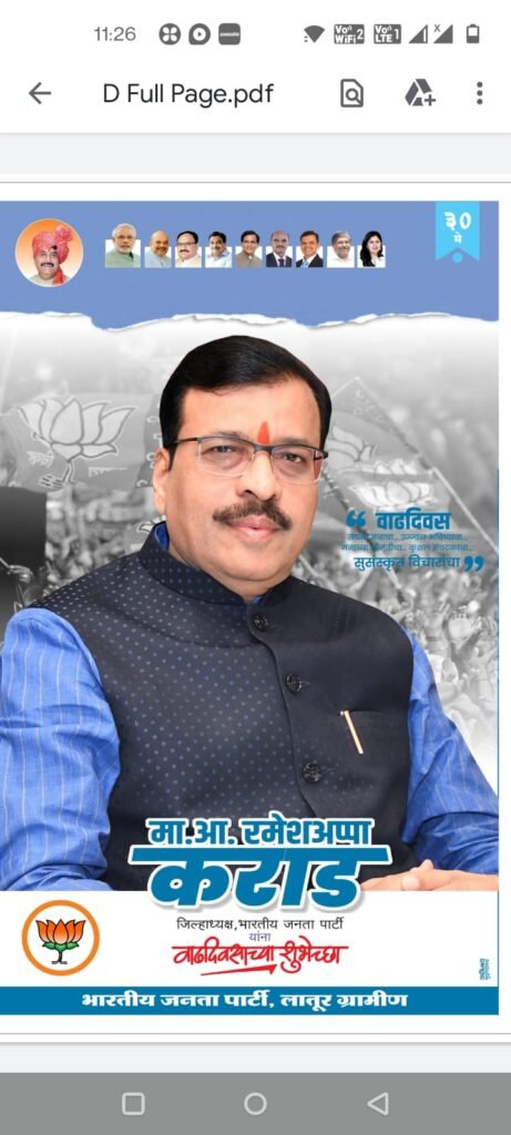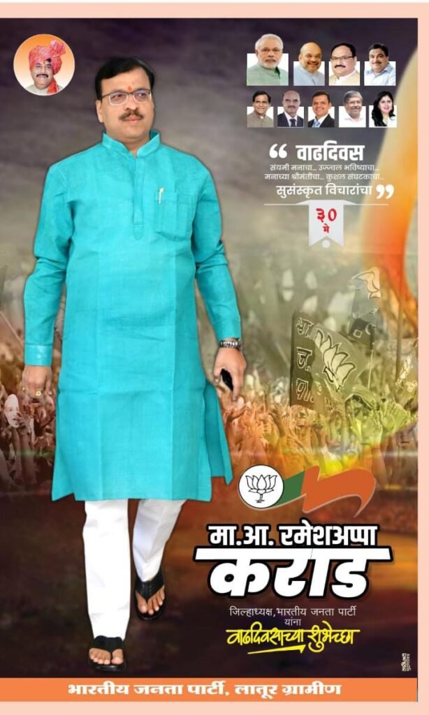 काबाड कष्ट करणार्‍या शेतकर्‍यांना त्यांच्या कष्टाचा मोबदला मिळाला पाहिजे, त्यांच्या घामाचे मोल झाले पाहिजे. शेतकरी, कष्टकरी, शेतकजूर यांच्यासह सर्वसामान्यांना न्याय मिळायला हवा यासाठी राजकिय क्षेत्रात आल्यापासून सतत संघर्ष करणारे भाजपाचे नेते आ. रमेशअप्पा कराड आणि संघर्ष एकाच नान्याच्या दोन बाजू म्हटलं तर वावगं ठरणारे नाही. त्यांनी केलेल्या कामाची दखल घेवून भाजपा पक्षश्रेष्ठीने जिल्हाध्यक्ष आणि विधान परिषदेचे सदस्य या दोन्ही महत्वाच्या जबाबदार्‍या त्यांच्यावर सोपविल्या. रमेशअप्पा यांनीही कामाच्या माध्यमातून मिळालेल्या संधीचं सोनं करुन दाखविण्याचा वेळोवेळी प्रयत्न केला. येत्या काळात आ. रमेशअप्पा कराड यांच्या हातून सर्वांगीन विकास कामासह गरजुंच्या प्रश्नांची सोडवणूक व्हावी. त्यांच्या आध्यातिमक, सामाजिक आणि राजकिय कामाचा पताका अखंडपणे फडकत राहो हीच जन्मदिनानिमित्ताने सदिच्छा !!! ……चंद्रकांत कातळे, रेणापूर