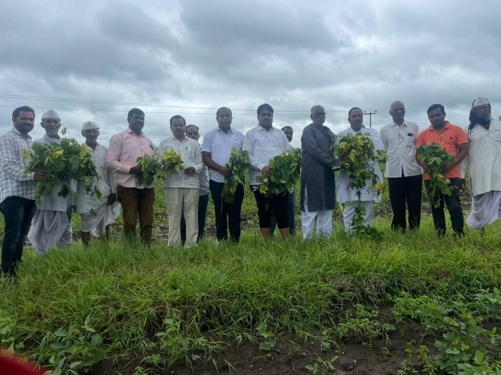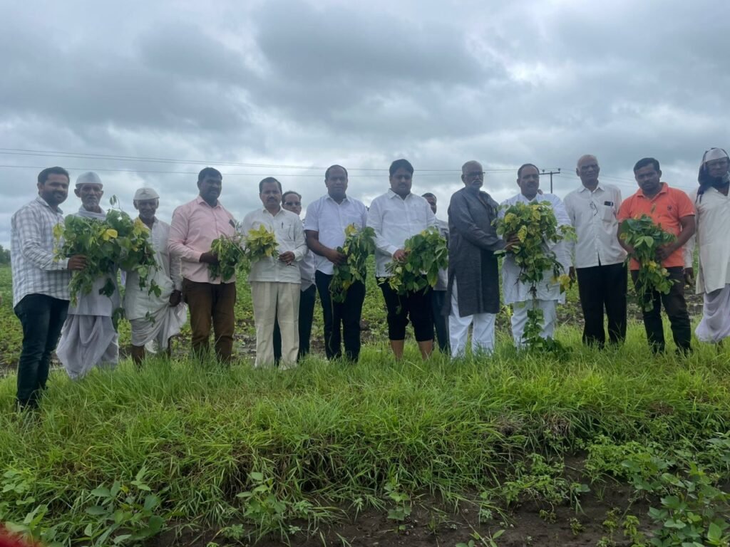 माजी मंत्री आमदार अमित देशमुख यांच्या सुचनेवरून आज लातूर तालुका काँग्रेस कमिटीच्या शिष्टमंडळाने लातूर तालुक्यातील बामणी येथील प्रविण देशमुख, हरिश्चंद्र चव्हाण, व्यंकटराव माडे, श्रीपाल गोरे यांच्या शेतावर जाऊन येलो मोझॅकमुळे सोयाबीन पिकाचे होत असलेल्या नुकसानिची पाहणी केली. त्यांनतर या शिष्टमंडळाने निवासी जिल्हाधिकारी श्री ढगे यांची भेट घेऊन माजी मंत्री आमदार अमित देशमुख यांचे व तालुका काँग्रेसचे निवेदन सादर केले. या निवेदनात आमदार देशमुख यांनी म्हटले आहे की, लातूर जिल्ह्यात मागच्या एक ते दीड महिन्यापासून संततधार पाऊस सुरु आहे. अनेक मंडळामध्ये अतिवृष्टी झाली आहे. त्यामुळे जिल्ह्रातील खरीप पिकांचे संपुर्णत: नुकसान झाले आहे. पेरणीनंतर लगेच दमट वातावरणात गोगलगाईचे संकट येऊन सोयाबीन व इतर पिकाचे मोठ्या प्रमाणावर नुकसान झाले. सखल भागात पाणी साचून खरिपाची पिके पुर्णत: वाया गेली आहेत. ढगाळ वातावरणात सुर्यपकाश न मिळाल्याने उंचवट्यावरील आणि निचरा होणाया जमीनीतील पिकांचीही वाढ खुटली आहे. आता या पिकावर येलो मोझॅकचे नवे संकट आल्यामुळे ही पिके पुर्णत: वाया गेली असल्याचे त्यांनी म्हटले आहे.