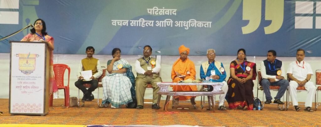 महाराष्ट्र – कर्नाटक सीमाप्रश्नाची लढाई कित्येक वर्षांपासून सुरू आहे. देशाच्या इतिहासात इतक्या प्रदीर्घ काळ सुरू असलेला दुसरा लढा नाही, असा खेदजनक निष्कर्ष ‘सीमा भागात अडकलेल्या मराठी समाजाला भारत सरकार अजून किती दिवस कुजवणार?’ या परिसंवादात काढण्यात आला. मनोहर गोमारे यांच्या अध्यक्षतेखाली झालेल्या या चर्चेत डॉ. डॉ. अच्युत माने, नारायण पाटील, शुभम शेळके, नारायण कापोलकर सहभागी झाले होते. राज्यातील नेत्यांचा निर्धार आणि केंद्राचा पुढाकार यातूनच हा प्रश्न सुटू शकेल, असे डॉ. अच्युत माने यांनी सांगितले. दुसरीकडे, बालकांचे कथाकथन, बालवाचन – उपाययोजना, बालसाहित्यिकांशी गप्पा व संवाद असे कार्यक्रम झाले.