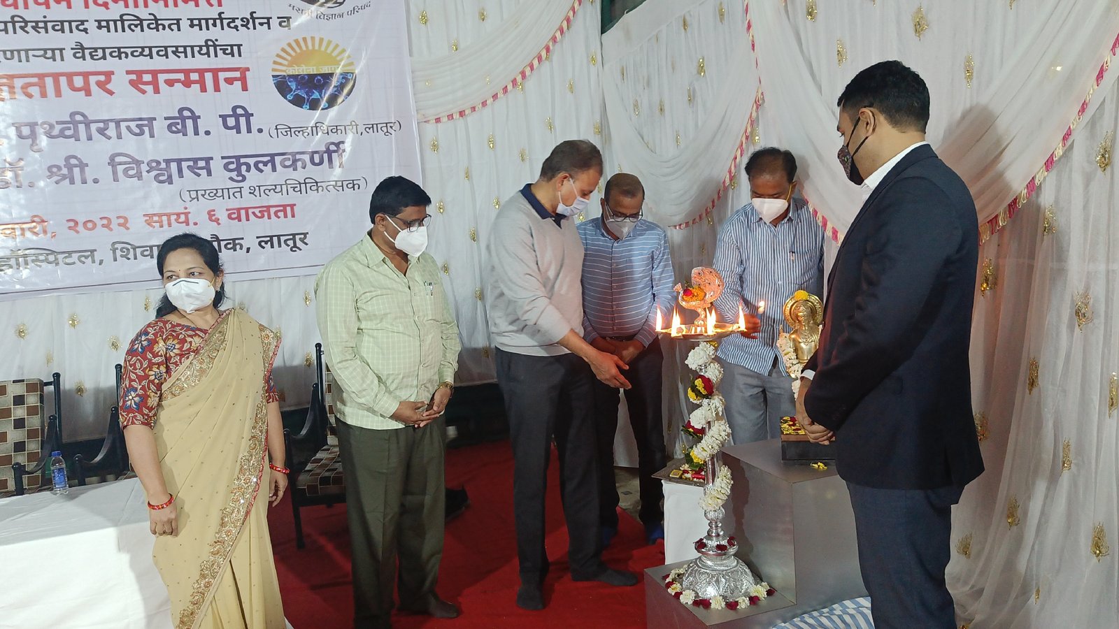 सुधाकरराव कुलकर्णी स्मृती प्रतिष्ठान व त्याअंतर्गत मराठी विज्ञान परिषदेच्या पानगाव विभागाच्या ‘कोरोना जागर’ या जनजागृती परिसंवाद मालिकेतील वैद्यकव्यवसायी साधन व्यक्तींचा प्रतिष्ठानच्या चतुर्थ वर्धापनदिनानिमित्त कृतज्ञतापर सन्मान आयोजित करण्यात आला, त्याप्रसंगी ते बोलत होते. कार्यक्रमात लातूरच्या एम. आय. एम. एस. आर. वैद्यकीय महाविद्यालयातील सहयोगी अधिष्ठाता डॉ. बी.एस. नागोबा, जनआरोग्य वैद्यकशास्त्र विभागप्रमुख डॉ. मुकुंद भिसे, शरीररचनाशास्त्र विभागाचे डॉ. महेश उगले, औषधनिर्माणशास्त्र विभागाचे डॉ. अभिजीत मुगळीकर, लातूर येथील कृष्णा विश्लेषक प्रयोगशाळेच्या डॉ. ऋजुता अयाचित, अतिदक्षतातज्ज्ञ डॉ. शिरीष पाटील, डॉ. सौ. सुनिता पाटील, डॉ. अरुण मोरे, मानसोपचार तज्ज्ञ व समुपदेशक डॉ. मिलिंद पोतदार, डॉ. सौ. अनघा राजपूत, डॉ. दिनेश पाटील व मिरज येथील शासकीय वैद्यकीय महाविद्यालयातील सहयोगी प्राध्यापिका डॉ. प्रिया देशपांडे या मान्यवर अनुभवी व संशोधक तज्ज्ञांचा त्यांच्या ‘कोरोना जागर’ या उपक्रमातील निर्व्याज योगदानाबद्दल जिल्हाधिकारी महोदयांच्या हस्ते सत्कार करण्यात आला. तसेच, कोविडमृतांच्या पार्थिवांवर अंत्यसंस्कार करणाऱ्या लातूर महापालिकेतील सेवाकर्मी स्वच्छता निरीक्षक श्री. सिद्धाजी अंबादास मोरे यांचाही याप्रसंगी हृद्य सत्कार करण्यात आला.
