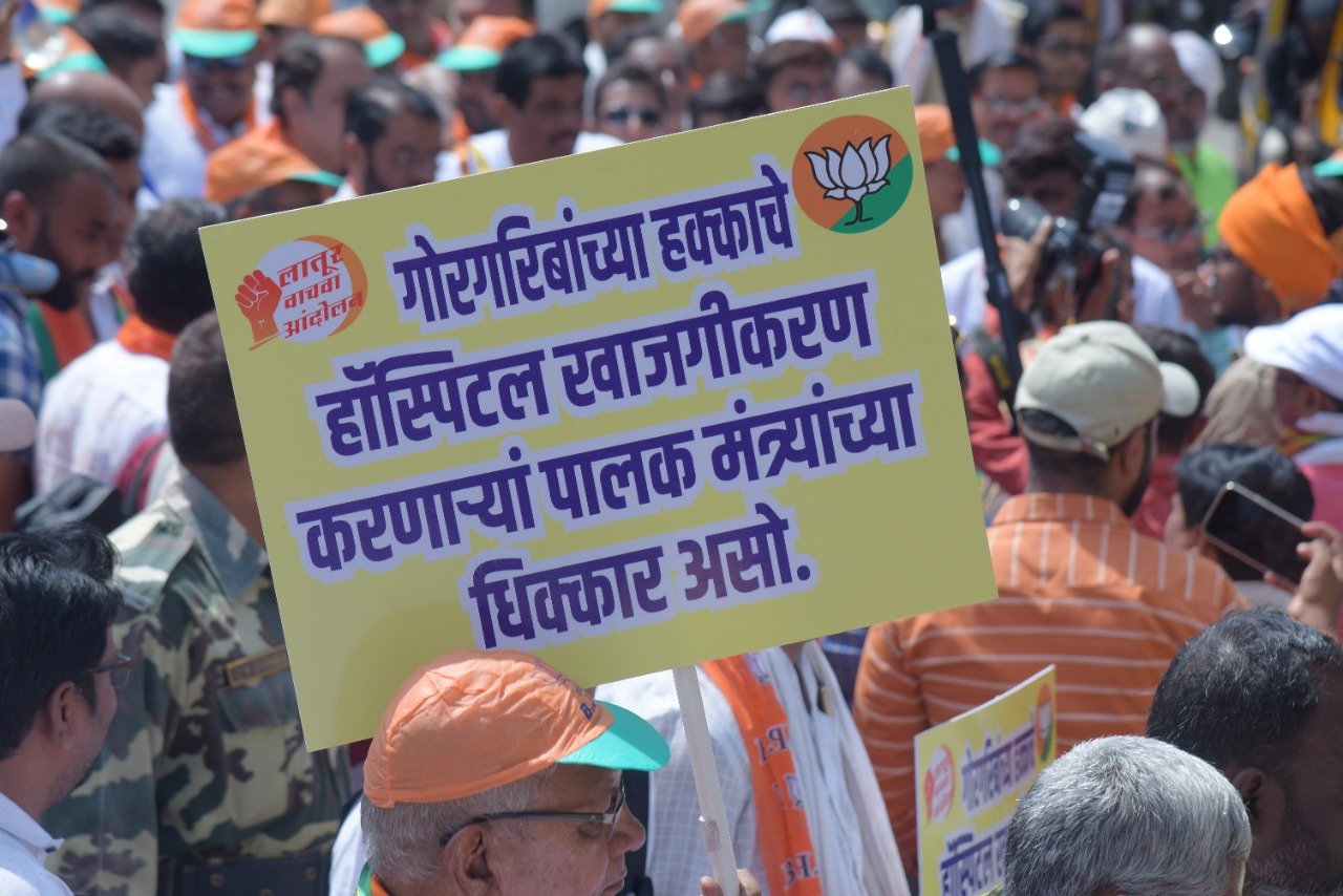 पंतप्रधान नरेंद्र मोदी यांच्या नेतृत्वातील केंद्र सरकारने सर्वसामान्यांसह गोर-गरीब रुग्णांना दर्जेदार आरोग्य सुविधा व उपचार प्राप्त व्हावेत याकरीता लातूर येथे सुपर स्पेशालिटी हॉस्पिटल मंजूर करून त्यांसाठी कोट्यावधी रुपयांचा निधी दिला असल्याचे सांगत आ. निलंगेकर म्हणाले की,  सदर हॉस्पिटल पुर्ण होऊन तीन वर्ष झाले तरी अद्यापर्यंत हे हॉस्पिटल महाविकास आघाडी सरकार व  पालकमंत्र्यांच्या अकार्यक्षमतेमुळे सुरु झालेले नाही. आता तर हे हॉस्पिटल खाजगीकरण करण्याचा घाट पालकमंत्र्यांनी घातला असल्याने गोर-गरीबांच्या हक्काचे हॉस्पिटल हिरावून नेण्याचे काम त्यांच्याकडून होत आहे. केंद्र सरकारने उभा केलेले हे हॉस्पिटल खाजगीकरण होऊ नये याकरीता हे आंदोलन प्राथमिक स्वरुपाचे असून आगामी काळात याची प्रक्रिया रद्द न झाल्यास अधिक तीव्र आंदोलन करण्यात येणार असल्याचे  सांगत सदर हॉस्पिटल लातूरकरांचेच राहिल असे वचन आ. निलंगेकरांनी यावेळी दिले.उजनीचे पाणी देणार असे आश्वासन देणारे पालकमंत्री लातूरकरांना दहा ते बारा दिवसाआड पाणी देत असल्याचे सांगून आ. निलंगेकर यांनी पालकमंत्र्यांच्या अकार्यक्षमतेवर आसूड ओढला. स्वतःच्या कारखान्यांना चोवीस तास पाणी उपलब्ध करून देणारे पालकमंत्री मात्र लातूकरांना आता घाण पाणीपुरवठा करू लागलेले आहेत. या पाणीपुरवठ्याबाबत अनेकवेळा लातूकरांनी तक्रारी केलेल्या असून अद्यापर्यंत यात बदल घडलेला नाही. या घाण पाण्यामुळे लातूरकरांचे आरोग्य धोक्यात आलेले असून त्यांच्या आरोग्याशी खेळण्याचे काम पालकमंत्री व मनपाकडून होत असल्याचा आरोप आ. निलंगेकरांनी यावेळी केला. भाजपच्या अडीच वर्षाच्या कार्यकाळात एक दिवसही घाण पाणीपुरवठा केला नसल्याची आठवण करून देत आ. निलंगेकरांनी याच काळात अमृत योजनेसह विविध विकास कामांकरीता कोट्यावधी रुपयांचा निधी मंजूर करून दिला असल्याचे आ. निलंगेकरांनी यावेळी सांगितले. मात्र गत अडीच वर्षात पालकमंत्र्यांनी मनपास एक रुपयांचाही निधी दिला नसल्याचे सांगून कोणतेही नवीन विकासकाम झाले नसल्याचा आरोप आ. निलंगेकरांनी यावेळी केला. जनतेला गृहीत धरणार्‍या या पालकमंत्र्यांना आता लातूरकरच धडा शिकवतील असे सांगून तात्काळ हा घाण पाणीपुरवठा नाही थांबविल्यास अधिक तीव्र आंदोलन करण्यात येईल अशा इशारा आ. निलंगेकरांनी यावेळी दिला.