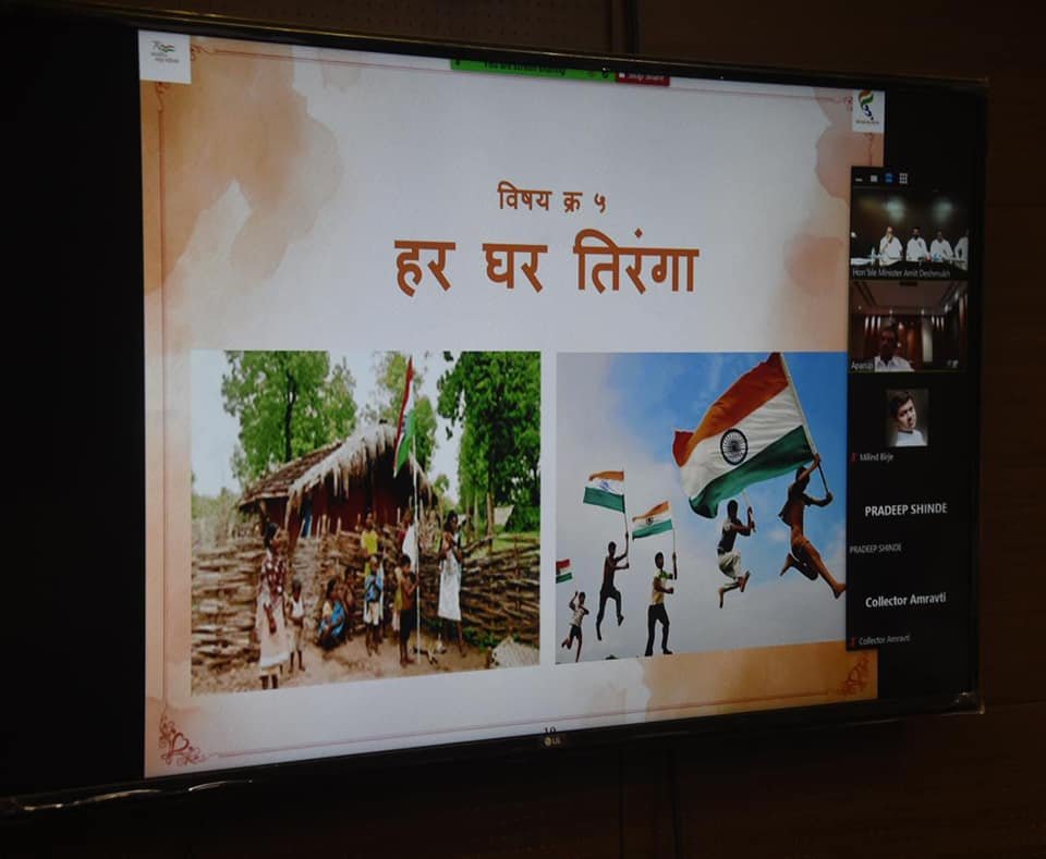 श्री.देशमुख म्हणाले की, भारतीय स्वातंत्र्याच्या अमृत महोत्सवी वर्षानिमित्त राज्यभरात विविध कार्यक्रमांचे आयोजन करण्यात येणार आहे. महाराष्ट्रामध्ये आजादी का अमृत महोत्सवानिमित्त “हर घर तिरंगा” हा विशेष कार्यक्रम आयोजित करण्यात येणार आहे. येत्या 11 ते 17 ऑगस्ट 2022 दरम्यान महाराष्ट्रातील सर्व घरांमध्ये तिरंगा फडकवला जाण्याचे नियोजन करण्यात येत असून यादृष्टीने सांस्कृतिक कार्य विभागाने याबाबत सर्व तयारी करावी.साधारणपणे महाराष्ट्रासाठी दोन कोटी तिरंग्याची आवश्यकता असणार आहे, त्यामुळे संविधानाचे नियम पाळून याबाबतची सर्व तयारी करण्यात यावी. येत्या 15 ऑगस्ट रोजी मरीन ड्राईव्ह येथे आजादी का अमृत महोत्सव वर्षानिमित्त भारताची गेल्या 75 वर्षांतील प्रगती यावर आधारीत एका विशेष लेझर शोचे आयोजन करण्यासाठी तयारी करण्यात यावी. येत्या 9 ऑगस्ट रोजी दोन्ही सभागृहांचे सदस्य यांच्यासह महाराष्ट्रातील विविध क्षेत्रातील मान्यवर यांना एकत्र घेऊन एका विशेष कार्यक्रमाचे आयोजन विधानभवनात करण्याचे नियोजन करण्यात यावे.