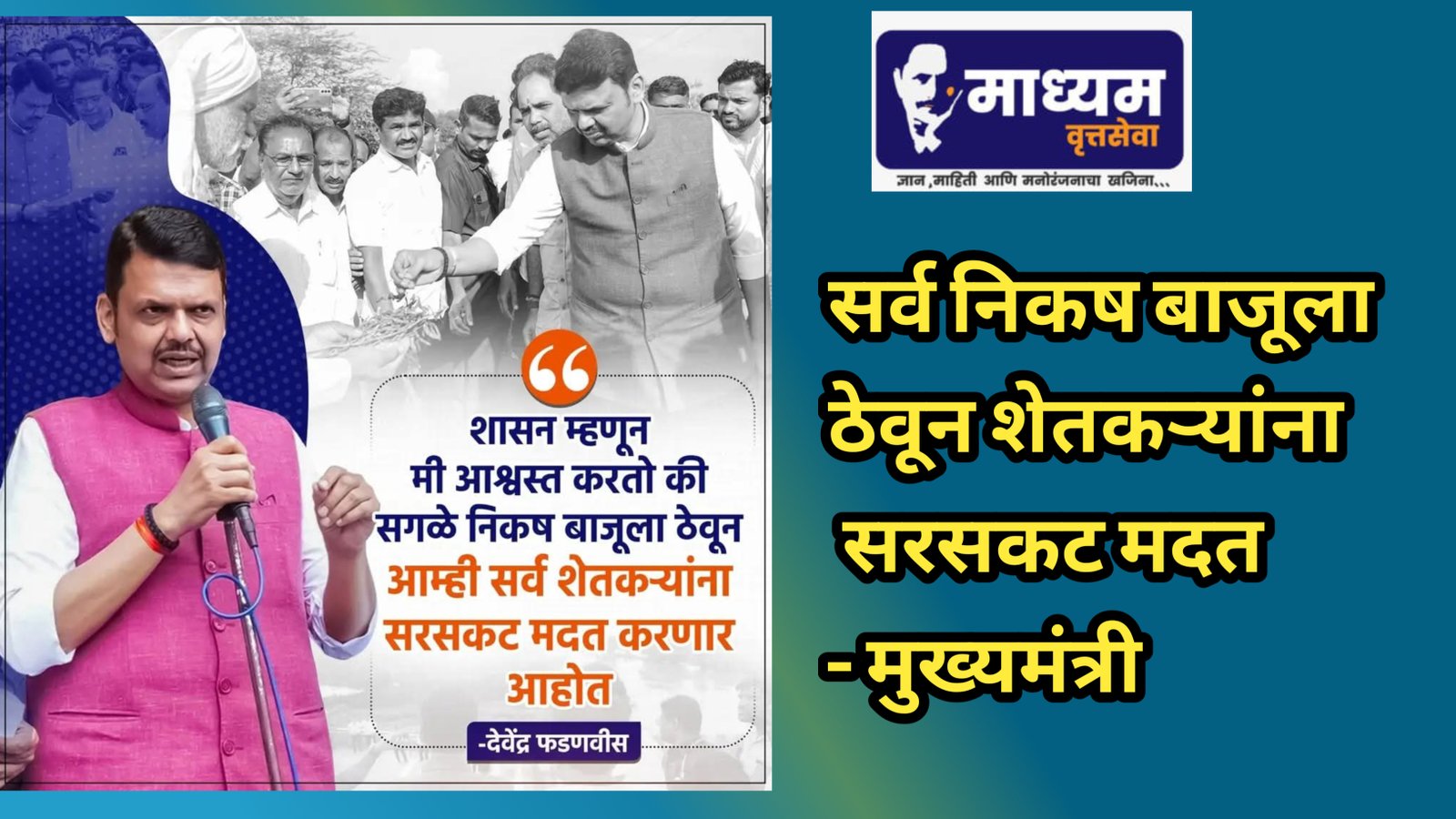 *सर्व निकष बाजूला ठेवून शेतकऱ्यांना सरसकट मदत; दिवाळीपूर्वी मदतीचे वितरण केले जाईल – मुख्यमंत्री देवेंद्र फडणवीस*